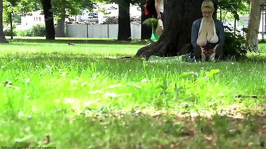 A busty and horny lisa ann fake titts chick enjoys pleasing her muff on a picnic