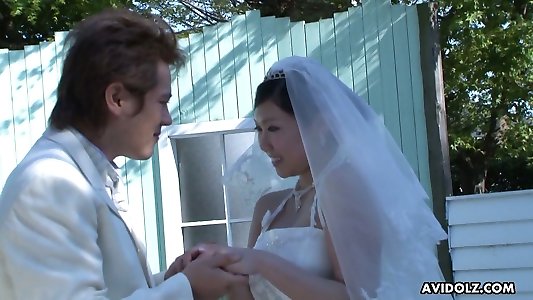 Horny and quite huge-boobed Japanese bride Emi Koizumi gives a supreme blow-job