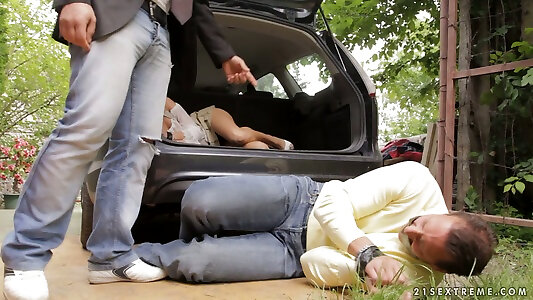 A nasty group of mates kidnap a duo for hookup