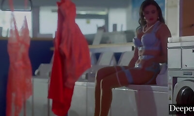 Milf got all her clothes in the laundry and was left in her lingerie and stockings