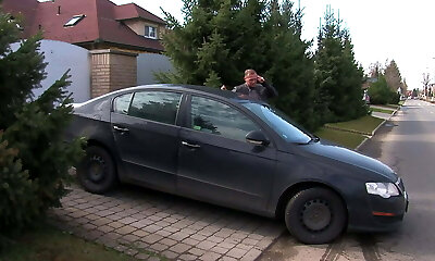 Stripping down to panties in the car