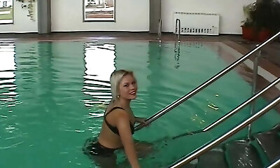 Beautiful and in lingerie, the beautiful towheaded enjoys the