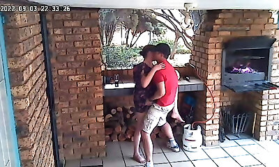 Spycam: CC TV self catering accomodation duo fucking on front porch of nature reserve
