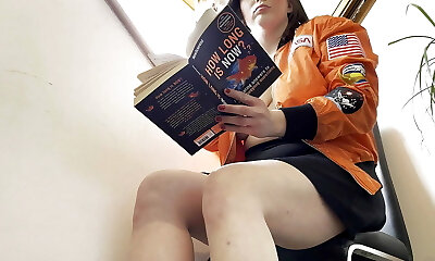 Stepmom pulled down her jeans so I can jerk off and jism on her pantyhose ass