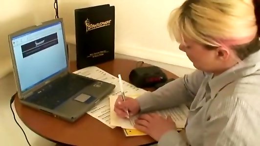 Platinum-blonde domina nails her victim by strap dildo