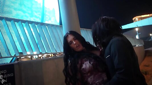 Phat-assed Brunette BBW Alex Blair Goes Nuts In the City At Night, Having Fun With Gibby The Clown