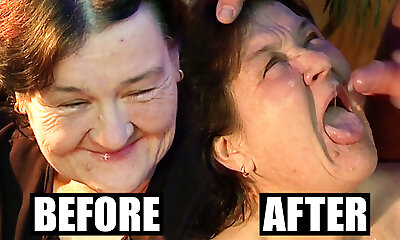 Very old granny didn't know jism on her face