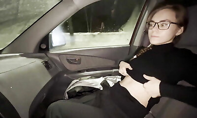 Enormous milk skinned BBW teen masturbates her cooch in car