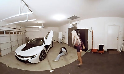 Van wash with Mega Boobs and a thick boner between her legs