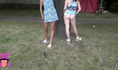 Two Ladies Flashing Pussy In Public Park, Upskirt No Panties