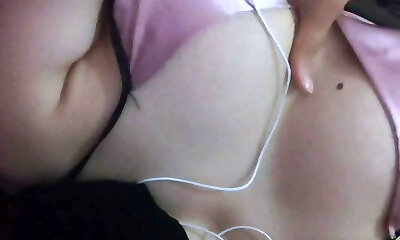 Slutty amateur flashing her big melons in the backseat