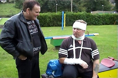 un fisioterapista piega il suo cocente cliente e la scopa
