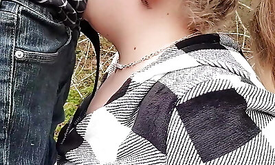 Cute bbw in glasses deepthroat blowjob doggystyle jizz shot on booty in public outdoor